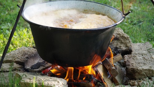 Anschließend: Wildsuppe und heiße Getränke am Feuer.